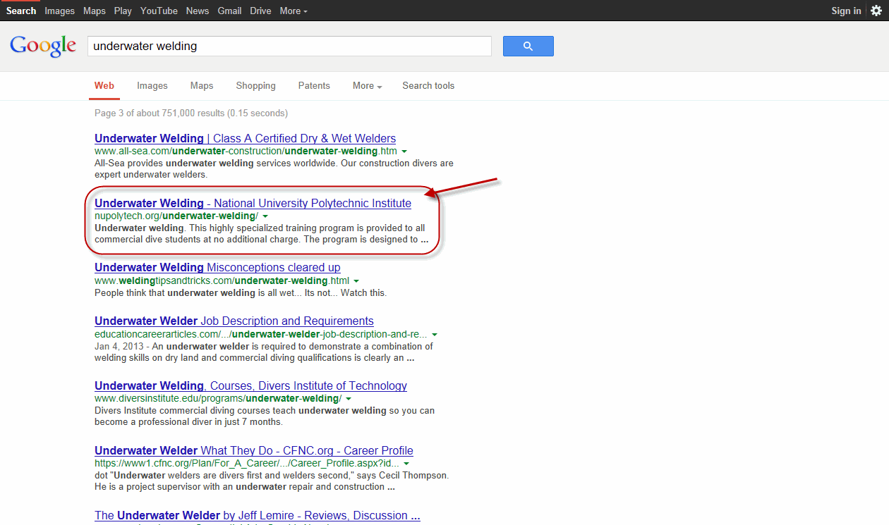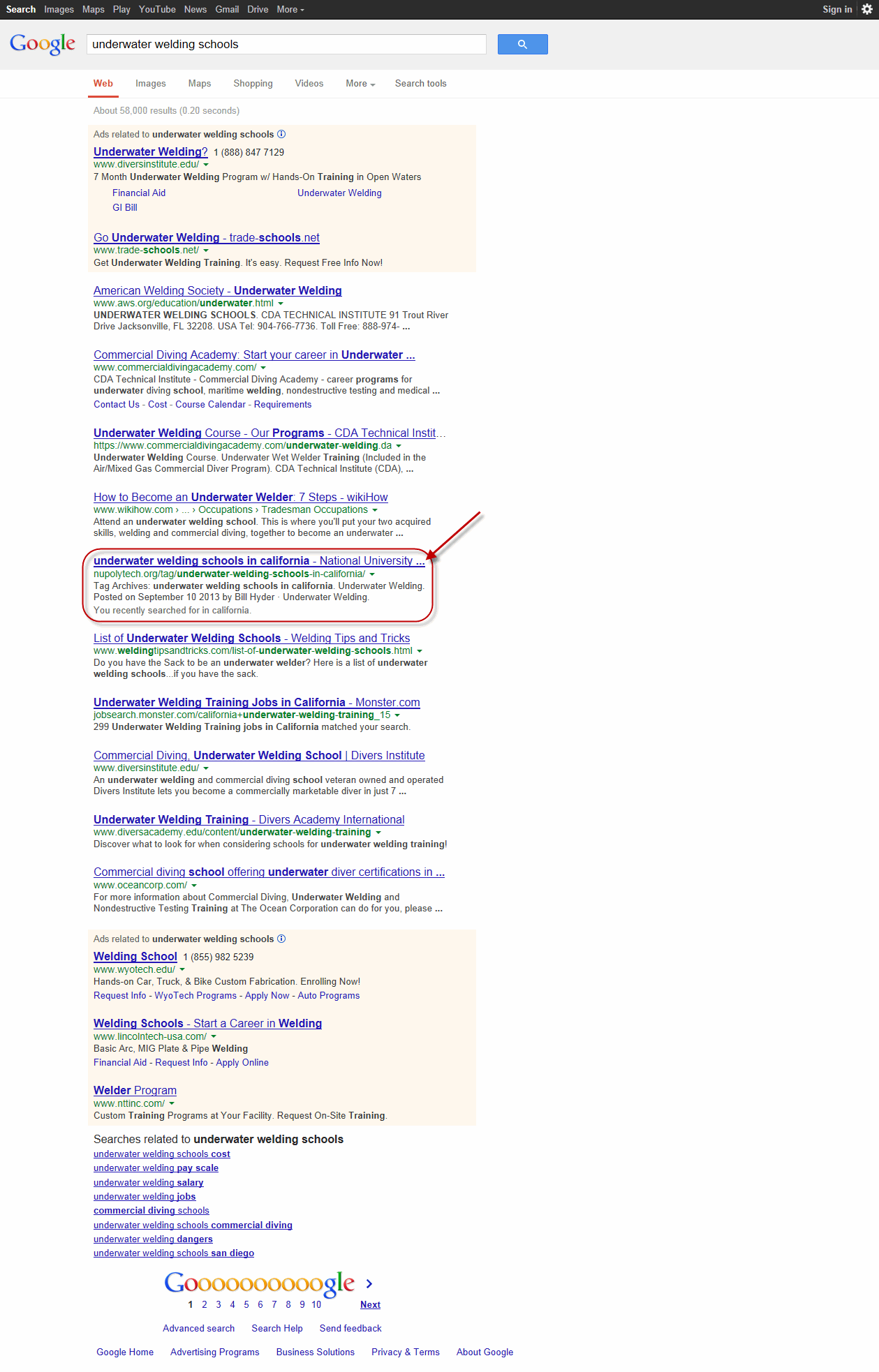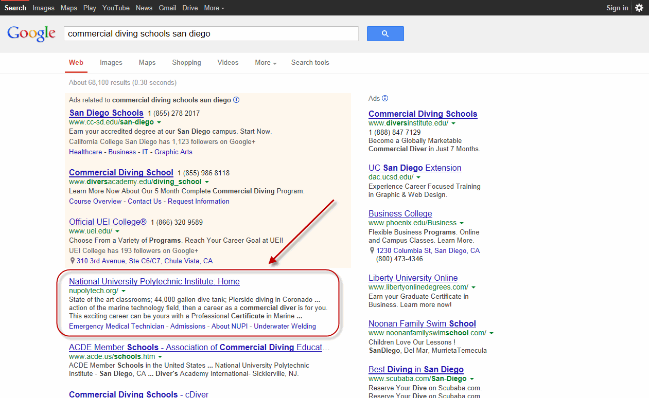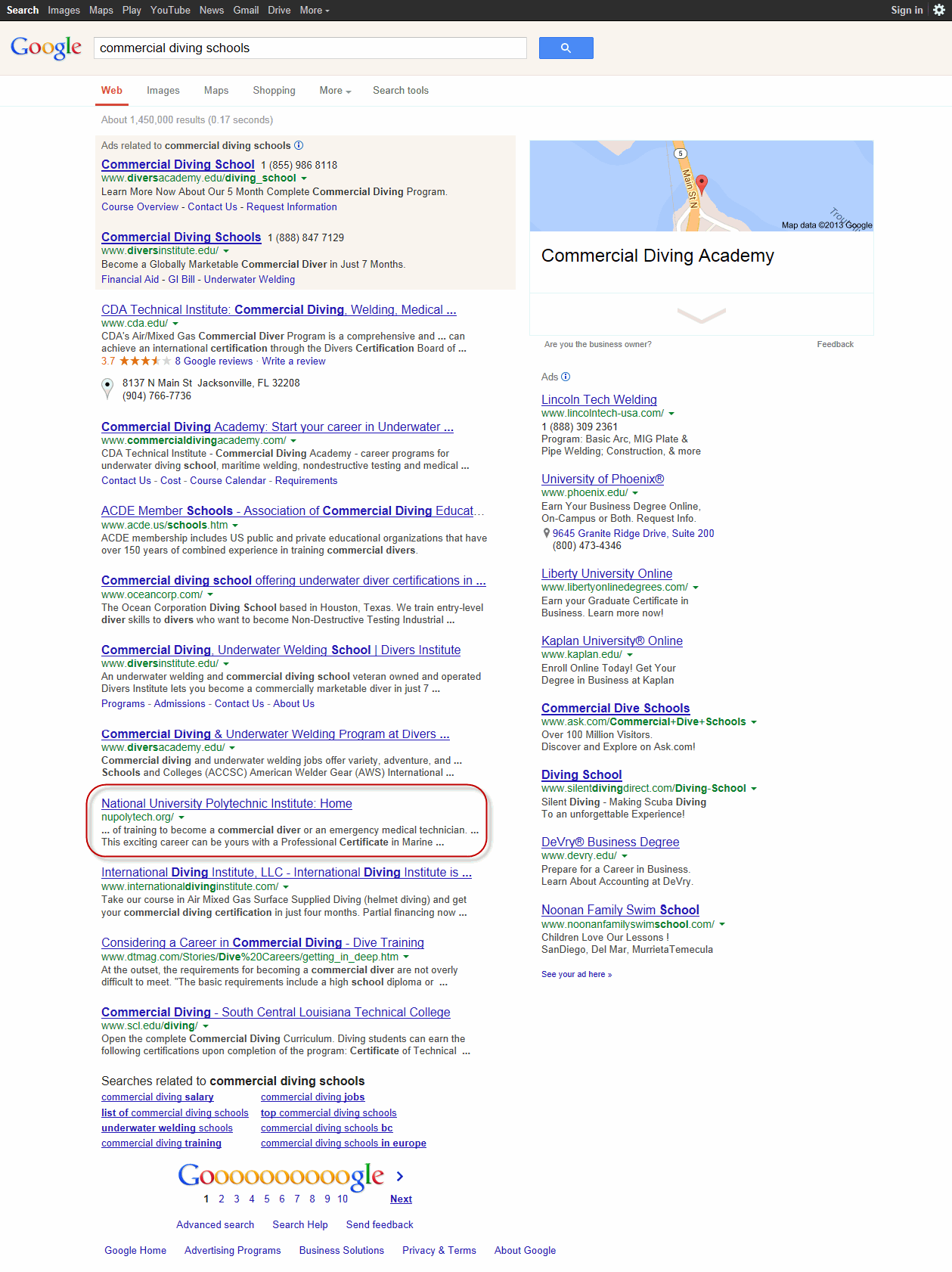 For National University Polytechnic Institute, or NUPI, I managed to get several keywords ranked on page #1 in the SERPs for the website http://www.nupolytech.org. Keywords included: